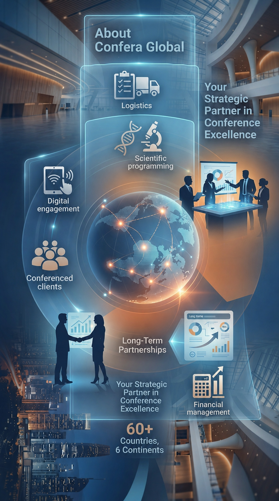 Whether you're planning your first international conference or looking for a partner to elevate an established congress, we'd love to hear about your vision and explore how Confera Global can make it a reality.